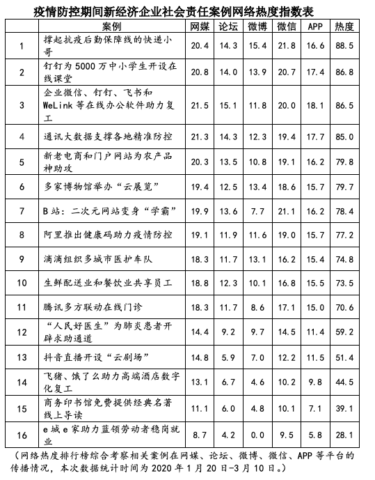 課題組考察在統籌推進疫情防控和經濟社會秩序恢復中表現突出的互聯網平臺案例,根據其對經濟社會生活的實際影響,以及公眾對相關服務的關注度和美譽度,由長期研究互聯網新經濟的專家學者推薦產生“疫情防控期間互聯網企業(yè)社會責任案例”。新經濟是一個開放的賽道,在服務公眾的賽道上應鼓勵萬馬奔騰。本次案例推薦不僅重視BAT等超級平臺,也適當選入一些中小微互聯網企業(yè),點贊其服務經濟民生的創(chuàng)新嘗試。