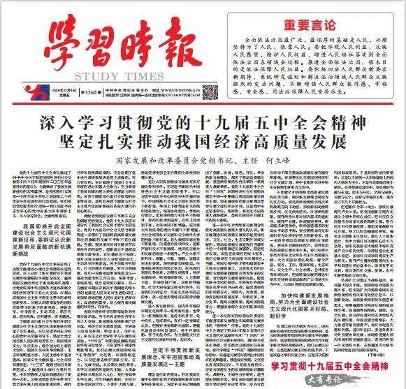 一分部署,九分落實,黨的十九屆五中全會描繪的宏偉藍圖要靠全黨全國各族人民的辛勤工作和努力奮斗去實現(xiàn)。我們要緊密團結(jié)在以習近平同志為核心的黨中央周圍,在黨中央集中統(tǒng)一領(lǐng)導(dǎo)下,深入學(xué)習貫徹習近平新時代中國特色社會主義思想,增強“四個意識”、堅定“四個自信”、做到“兩個維護”,不忘初心、牢記使命,同心同德、頑強奮斗,不斷提高貫徹新發(fā)展理念、構(gòu)建新發(fā)展格局的能力和水平,為奪取全面建設(shè)社會主義現(xiàn)代化國家新勝利作出應(yīng)有的貢獻。