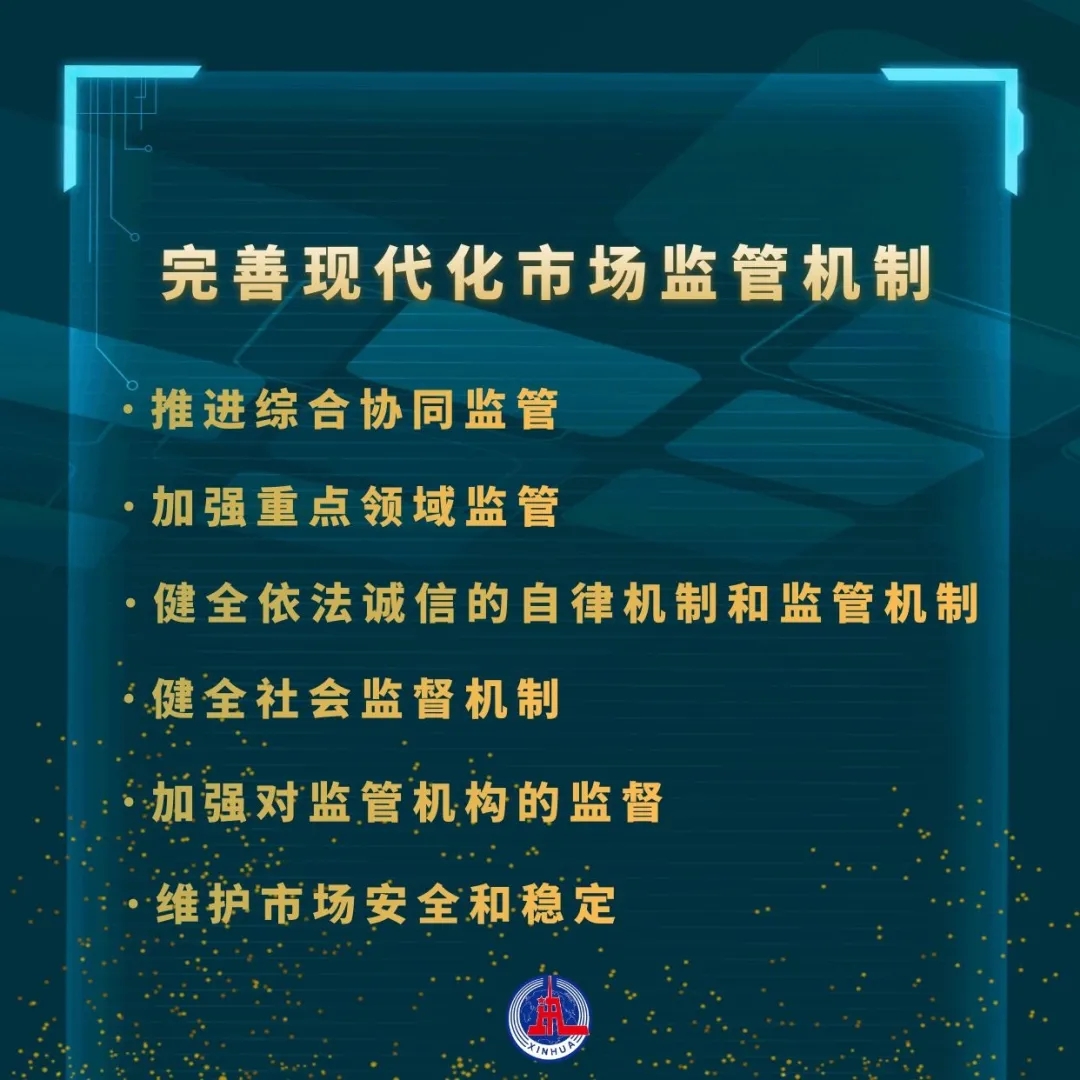 ——推進(jìn)制度建設(shè)。一方面,加強(qiáng)市場(chǎng)體系本身的各項(xiàng)制度建設(shè),包括產(chǎn)權(quán)保護(hù)、市場(chǎng)準(zhǔn)入、公平競(jìng)爭(zhēng)等基礎(chǔ)性制度,以及對(duì)接國(guó)際市場(chǎng)規(guī)則,強(qiáng)化國(guó)內(nèi)市場(chǎng)立規(guī)建制能力;另一方面,加強(qiáng)能促進(jìn)市場(chǎng)體系有效運(yùn)行相關(guān)的現(xiàn)代市場(chǎng)監(jiān)管機(jī)制等配套制度建設(shè),包括包容審慎監(jiān)管、信用監(jiān)管、社會(huì)監(jiān)管等。