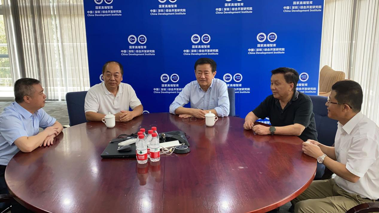 調(diào)研期間,趙艾一行還前往中國(深圳)綜合開發(fā)研究院調(diào)研,與我會(huì)副會(huì)長、中國(深圳)綜合開發(fā)研究院院長樊綱、常務(wù)副院長郭萬達(dá)等就加強(qiáng)智庫之間的交流與合作交換看法。