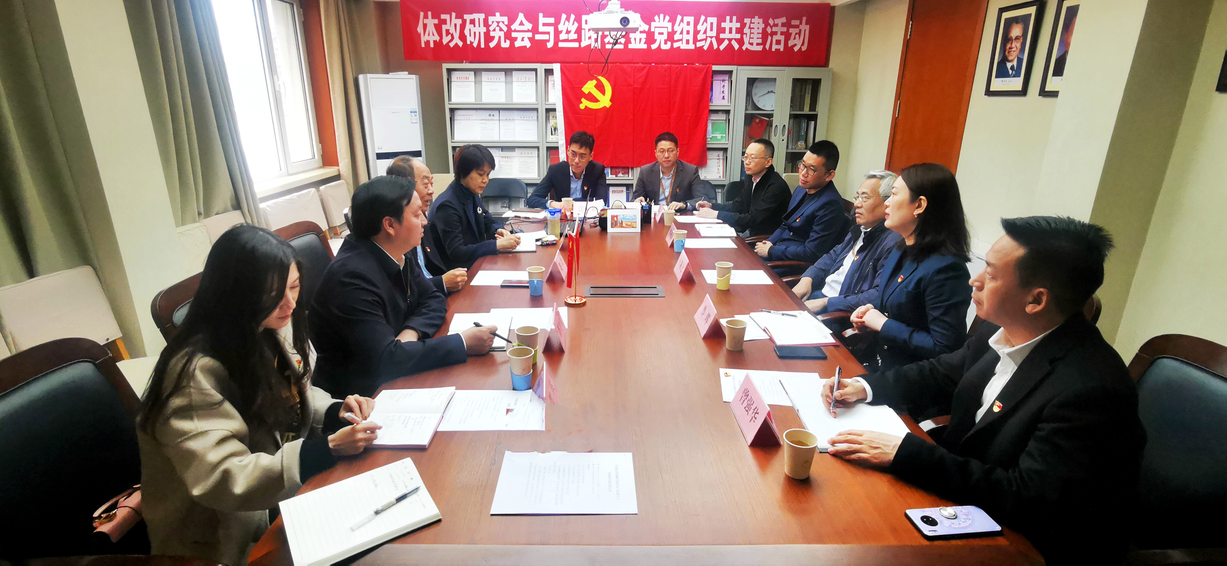 絲路基金黨委委員、第五黨支部書記曹暉等絲路基金黨組織成員,中國經濟體制改革研究會黨支部書記、副秘書長兼辦公室主任張昕,中國經濟體制改革研究會黨支部副書記、副秘書長、中國經濟體制改革雜志社社長潘治宏等同志參加共建活動。