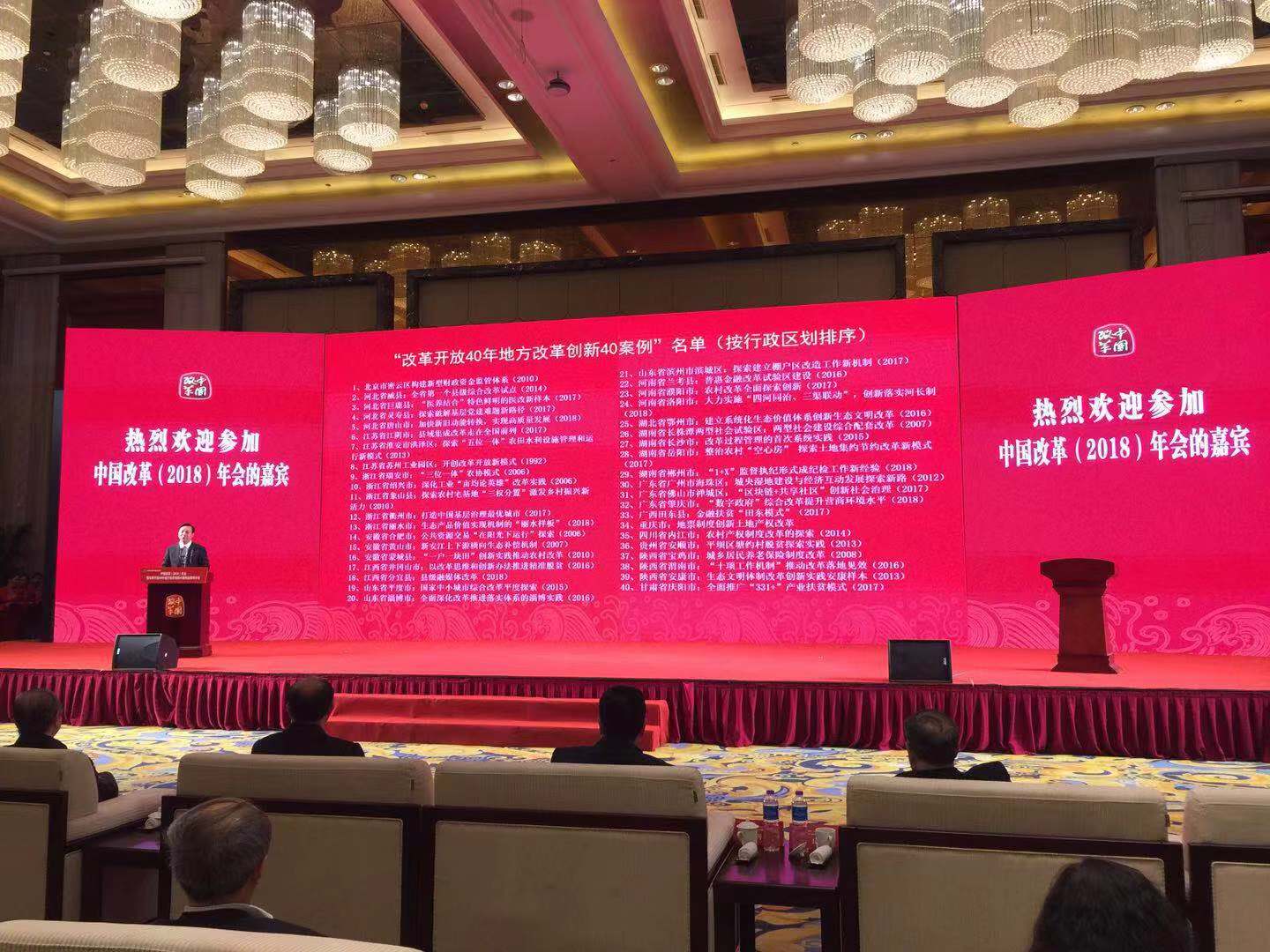 為響應(yīng)中央關(guān)于慶祝改革開放40年號召,貫徹習(xí)近平總書記在慶祝改革開放40周年大會重要講話精神,中國經(jīng)濟(jì)體制改革雜志社舉辦的“改革開放40年地方改革創(chuàng)新40案例”(簡稱“40年40案例”)征集活動于12月27日在江蘇省江陰市舉辦的“中國改革(2018)年會”上,揭曉最終名單。180多位來自全國20多個省區(qū)市的各級改革部門負(fù)責(zé)人參加了發(fā)布會議。“改革開放40年地方改革創(chuàng)新致敬案例”名單同時發(fā)布。