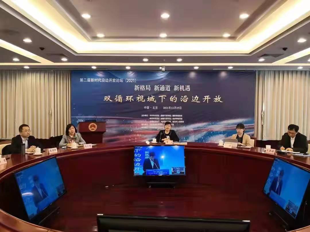 2021年12月25日,我會(huì)常務(wù)副會(huì)長兼秘書長趙艾應(yīng)邀出席新時(shí)代沿邊開放論壇,并以線上視頻連線的方式作題為“沿邊開放新時(shí)代新任務(wù)新要求”主旨演講。中共中央黨校(國家行政學(xué)院)經(jīng)濟(jì)學(xué)教研部主任、教授、博士生導(dǎo)師韓保江,云南省商務(wù)廳黨組書記、廳長李晨陽,中共臨滄市委副書記、臨滄市人民政府代理市長杜建輝作論壇開幕式致辭。中共中央黨校(國家行政學(xué)院)經(jīng)濟(jì)學(xué)教研部副主任、教授、博士生導(dǎo)師曹立作閉幕總結(jié)。