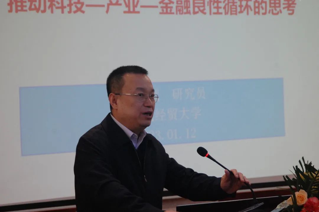 史玉強(qiáng)在書面致辭中說,此次會(huì)議雖然規(guī)模不大,時(shí)間也不長,但內(nèi)容很豐富,層層較高,很有特點(diǎn),是一個(gè)小而精、小而美的高質(zhì)量研討會(huì)。會(huì)議以貫徹黨的二十大精神,深化改革,推動(dòng)經(jīng)濟(jì)高質(zhì)量發(fā)展為主題,深入研究產(chǎn)業(yè)、科技、金融良性驅(qū)動(dòng),建設(shè)現(xiàn)代化產(chǎn)業(yè)體系,是當(dāng)前經(jīng)濟(jì)工作重點(diǎn)。會(huì)議組織形式新穎,兩個(gè)研究會(huì)、一所大學(xué)、一家銀行聚集研討,各有特點(diǎn),各有優(yōu)勢,一定會(huì)推出高水平成果。參會(huì)演講的專家都是業(yè)內(nèi)、省內(nèi)的頂級專家,是一次名副其實(shí)的精英聚會(huì)。會(huì)議堅(jiān)持虛實(shí)結(jié)合,設(shè)計(jì)了銀企對接環(huán)節(jié)。