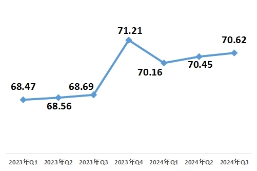 10月25日,中國經(jīng)濟(jì)體制改革研究會在京發(fā)布《2024年第三季度改革熱度第三方評估報告》。報告顯示,2024年第三季度改革熱度指數(shù)為70.62,比上一季度上升0.17,增長0.25%;同比增長2.81%。