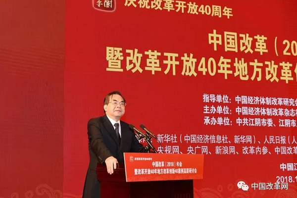 2018年12月27日,由中國經(jīng)濟(jì)體制改革研究會、中國經(jīng)濟(jì)改革研究基金會指導(dǎo),中國經(jīng)濟(jì)體制改革雜志社主辦,中共江陰市委、江陰市人民政府承辦的“慶祝改革開放40周年——中國改革(2018)年會暨改革開放40年地方改革創(chuàng)新40案例高層研討會”在江蘇省江陰市召開。