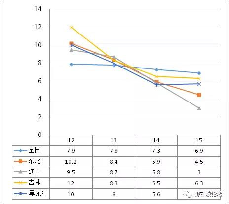 另外有一個(gè)數(shù)字,我希望經(jīng)濟(jì)學(xué)家們進(jìn)一步分析。近兩年東北居民消費(fèi)水平增長率和東北的GDP下降是反向的。遼寧是“斷崖式”的GDP下降,但居民消費(fèi)增長率2012年-2015年一直高于全國平均水平。